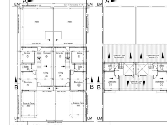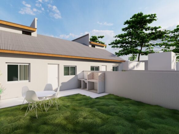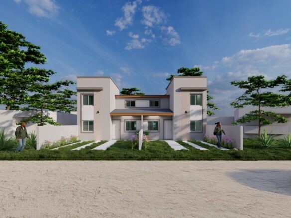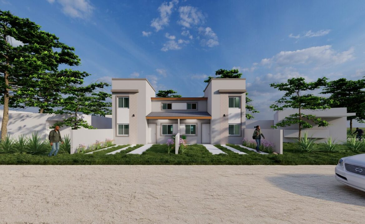 El lote cuenta con la construcción únicamente de dos unidades, lo que implica que cada uno disponga de medio lote, distribuidos internamente en cocina – comedor integrado, dos dormitorios en planta baja, baño completo, amplio patio con parrilla y espacio vehicular al frente de la unidad. En planta alta consta de dormitorio y baño completo. Estos dúplex también cuentan con altillo, que puede ser utilizado como un dormitorio más.